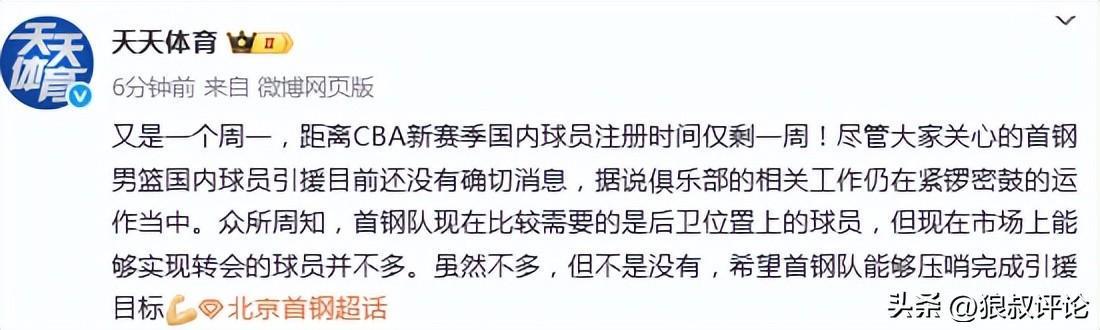 众所周知,首钢队现在比较需要的是后卫位置上的球员,但现在市场上能够实现转会的球员并不多。虽然不多,但不是没有,希望首钢队能够压哨完成引援目标。
